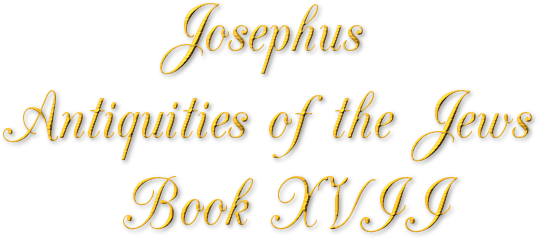 1. AS soon as Pheroras was dead, and his funeral was over, two of Pheroras's freed-men, who were much esteemed by him, came to Herod, and entreated him not to leave the murder of his brother without avenging it, but to examine into such an unreasonable and unhappy death. When he was moved with these words, for they seemed to him to be true, they said that Pheroras supped with his wife the day before he fell sick, and that a certain potion was brought him in such a sort of food as he was not used to eat; but that when he had eaten, he died of it: that this potion was brought out of Arabia by a woman, under pretense indeed as a love-potion, for that was its name, but in reality to kill Pheroras; for that the Arabian women are skillful in making such poisons: and the woman to whom they ascribe this was confessedly a most intimate friend of one of Sylleus's mistresses; and that both the mother and the sister of Pheroras's wife had been at the places where she lived, and had persuaded her to sell them this potion, and had come back and brought it with them the day before that his supper. Hereupon the king was provoked, and put the women slaves to the torture, and some that were free with them; and as the fact did not yet appear, because none of them would confess it, at length one of them, under the utmost agonies, said no more but this, that she prayed that God would send the like agonies upon Antipater's mother, who had been the occasion of these miseries to all of them. This prayer induced Herod to increase the women's tortures, till thereby all was discovered; their merry meetings, their secret assemblies, and the disclosing of what he had said to his son alone unto Pheroras' women. (Now what Herod had charged Antipater to conceal, was the gift of a hundred talents to him not to have any conversation with Pheroras.) And what hatred he bore to his father; and that he complained to his mother how very long his father lived; and that he was himself almost an old man, insomuch that if the kingdom should come to him, it would not afford him any great pleasure; and that there were a great many of his brothers, or brothers' children, bringing up, that might have hopes of the kingdom as well as himself, all which made his own hopes of it uncertain; for that even now, if he should himself not live, Herod had ordained that the government should be conferred, not on his son, but rather on a brother. He also had accused the king of great barbarity, and of the slaughter of his sons; and that it was out of the fear he was under, lest he should do the like to him, that made him contrive this his journey to Rome, and Pheroras contrive to go to his own tetrarchy.