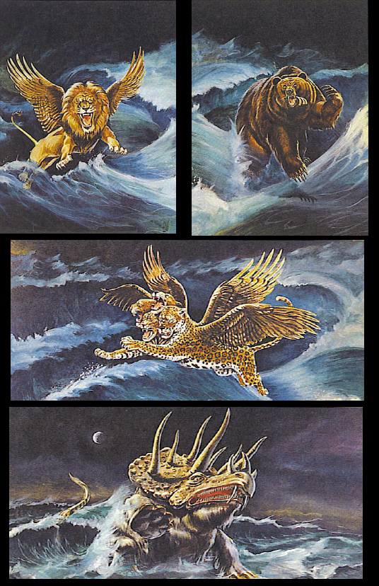 Daniel 7:3 "And four great beasts came up from the sea, diverse one from another."