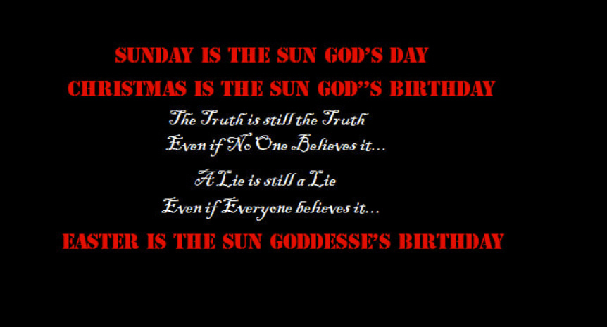 If you'll notice the world does not keep the "Feast Of Unleavened Bread" they keep Easter instead... Which was instituted by the Catholic Church supposedly depicting Christ rising from the grave... Which for centuries before the whole world was keeping this day of Easter for the Sun Goddess's birthday ... Supposedly she fell from heaven in an egg... and the rabbit represents fertility...