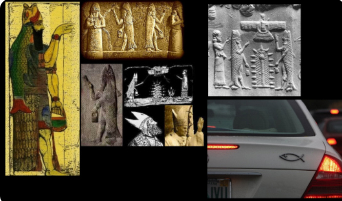 The Pope's hat actually represents the fish's mouth, see The Two Babylons... Even today you can see these fish symbols on the rear of many automobiles...