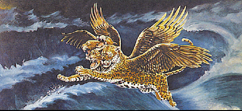 Daniel 7:6 After this I beheld, and lo another, like a leopard, which had upon the back of it four wings of a fowl; the beast had also four heads; and dominion was given to it. Image